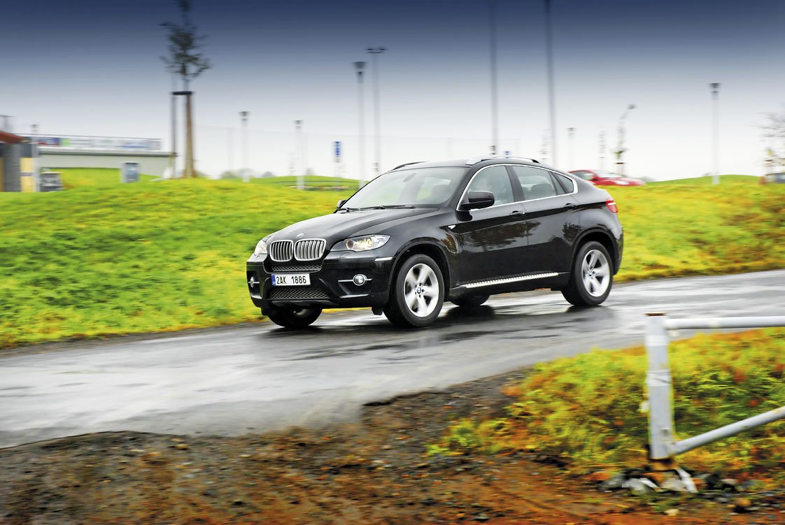 Mezi takzvanými sportovně-užitkovými vozy si X6 velmi rychle vydobyla exkluzivní renomé. Karoserie tvarovaná po vzoru kupé nelže, s tímhle autem se můžete pustit i do opravdu utažených zatáček a nenechá vás na holičkách ani tam, kde by jiná SUV dělala kotrmelce přes kabinu. Pomáhá v tom mimo jiné aktivní zadní diferenciál DPC, který dokáže dělit točivý moment podle potřeby a výrazně upřednostní vnější kolo. Náklony jsou přitom minimální a šíře pneumatik se stará o náležitý grip. Fyziku však nelze stoprocentně oblafnout a v lehce odtažitém řízení je cítit, jak podvozek doslova bojuje s monstrózní hmotností auta. Je to ale velmi vyrovnaný souboj a řidič jej zpravidla ukončí dříve, než se auto octne na limitu. Ano, mnichovští inženýři se vyznamenali i zde.