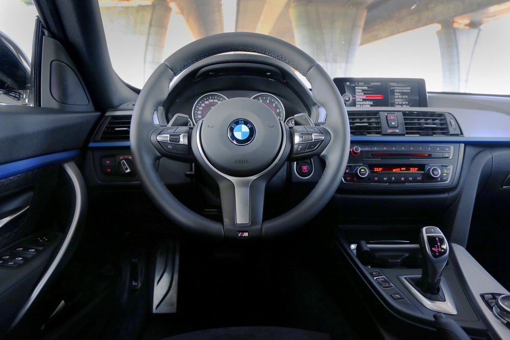 Uvnitř najdete vše na svém místě. Tedy pokud jste už v nějaké trojce seděli. Palubní deska je totiž téměř identická, což je dobře, protože její styl se mi zamlouvá. Zvykl jsem si na teplotní ovladače středových výdechů ventilace, dotyková tlačítka autorádia, graficky pěkný systém iDrive i jednoduché uspořádání budíků s klasicky oranžovým podsvětlením. M paket přidal nějaké ty štítky s písmenkem a také parádní sportovní volant. Je na něm pár tlačítek jinak než na běžném volantu, ale zvyknete si okamžitě. Je radost se na něj dívat, a tím spíš ho držet.