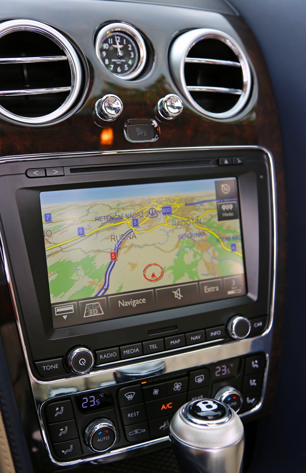 Sedět v Bentley je skvostný pocit. Sedadla jsou dokonale pohodlná a zároveň i pěkná na pohled. Károvaně prošívaná kůže zdobí nejen je, ale i výplně dveří. Ovladače klimatizace připomínají klapky trumpety (má je ale i Rolls-Royce) a uprostřed palubní desky sedí luxusní hodinky Breitling, s nimiž se tato značka už tradičně pojí. Ještě jedno mají Bentley a Rolls-Royce společné. Obě značky používají ve svých vozech ultraprémiové reproduktory britského malosériového výrobce Naim. Koncert pro uši! Ne vše je ale taková idylka. Třeba navigace očividně pochází ze staré generace vozů Volkswagen. A je velmi nepříjemné mít v autě horší systém, než má vaše sekretářka v aktuálním Golfu. Detail, mávnete možná rukou. Ale dovolte mi znovu připomenout, že tohle auto budou řídit lidé, kteří chtějí maximum.