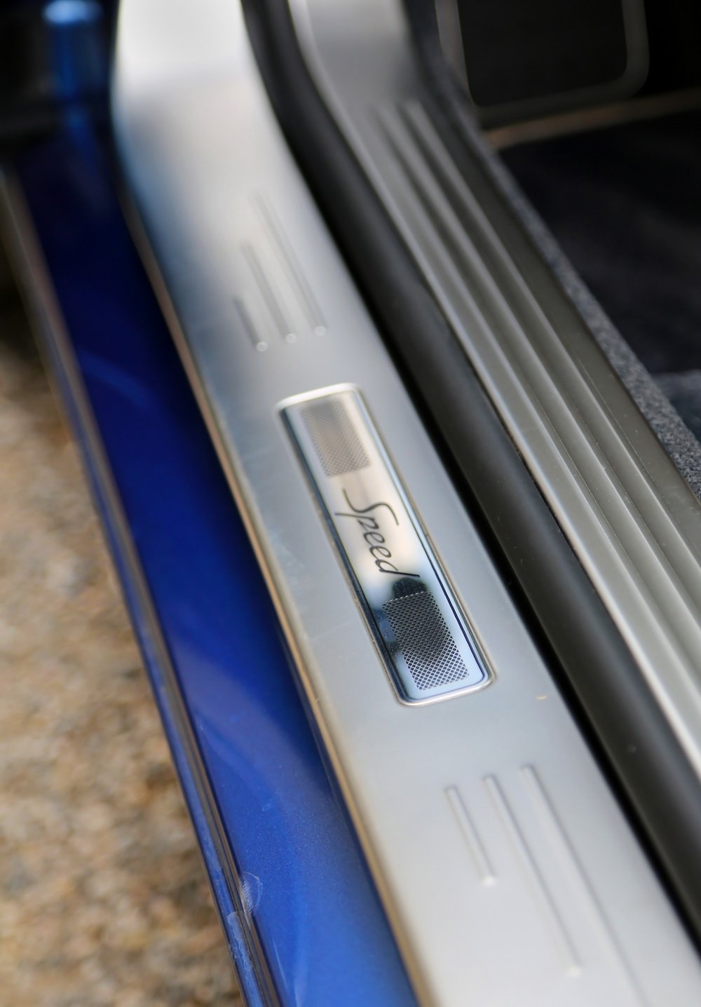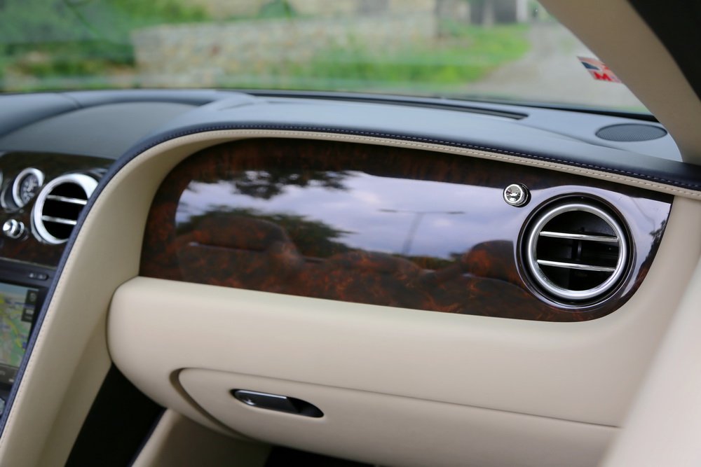 Na jaře jsme vás v reportáži provedli továrnou Bentley, kde se s hodinářskou přesností zpracovávají interiéry vozu podle přání zákazníka. Testovaný Speed je prvním vozem z Crewe, který se nám nyní dostává do ruky. A tak jsme v jeho kabině hladili dřevo i hliník nebo si přičichli ke kůži. Jistě, je to trochu fetišistické. Na druhou stranu je ale z vozu cítit pečlivý přístup lidí, kteří ho vlastnoručně vyráběli. Dobrým příkladem jsou i vznešené názvy: interiér je vyveden v barvě Portland, kůže je prošívaná nití barvy Imperial Blue a ta dokonale souzní s vnějším lakem karoserie nazývaným Blue Crystal.