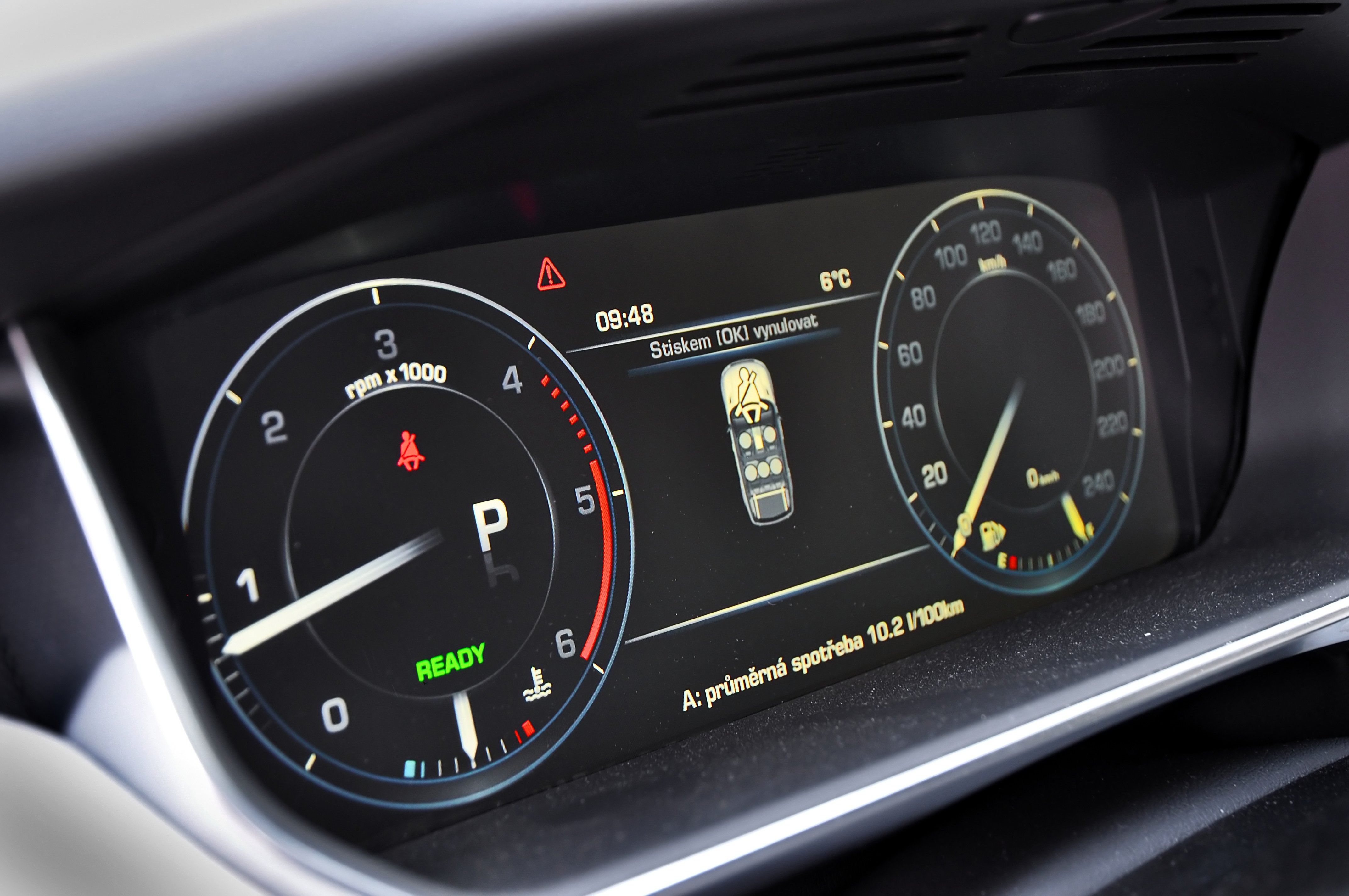 Tím prvním je jinak provedený přístrojový štít ukazující aktuální využití výkonu a stav akumulátorů. Jenže pozor, tohle si můžete dát pryč. Stačí zabrousit do menu a vyměnit hybridní přístrojový štít za ten klasický. Objeví se otáčkoměr, zmizí ukazatel stavu nabití akumulátorů. Potom už hybridní provedení prozrazuje jen miniaturní detail – tlačítko „EV“ umístěné vedle voliče převodovky. Tímto tlačítkem aktivujete režim jízdy pouze na elektrickou energii. Mohu vás ujistit, že takovou jízdu si moc dlouho neužijete.