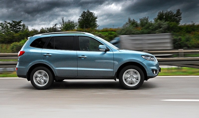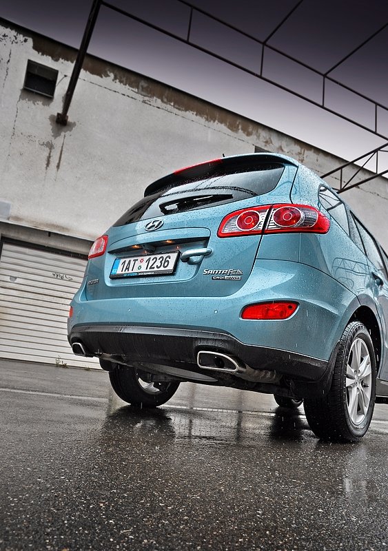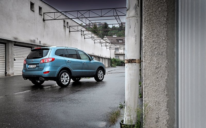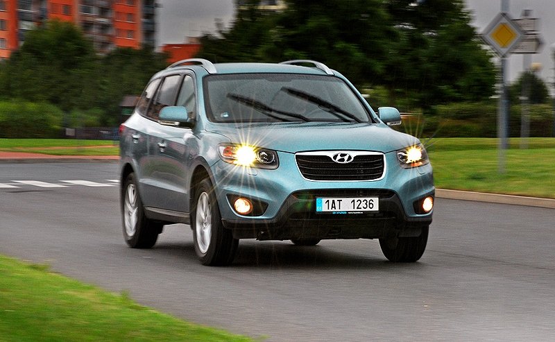 Už na první pohled je jasné, že Santa Fe si s terénní jízdou příliš rozumět nebude (i když světlou výšku 203 mm by mu mohl kdejaký offroad závidět). Je to zkrátka klasické SUV, které jednoznačně patří na silnice. V ceníku najdeme také verze s pohonem pouze předních kol, to ovšem mluvíme o základní výbavě Comfort 4×2. Ostatní už nabízejí hnaná všechna čtyři kola, a to prostřednictvím elektronicky řízené lamelové spojky, která reaguje na prokluz předních kol a dle potřeby připojuje ta zadní. Díky příslušnému ovladači lze napevno určit poměr 50/50 (takže naprostá klasika kategorie SUV). No a nakonec zpráva pro ty, kteří chtějí s tímto Korejcem tahat těžká břemena. Maximálních 2,5 tuny utáhne pouze diesel 4×4 spolupracující s manuální převodovkou, všichni ostatní zvládnou o půl tuny méně.