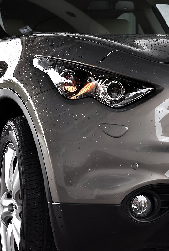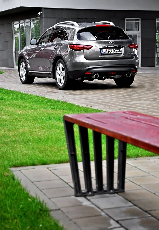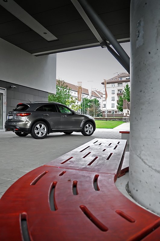 I když se na našich silnicích s Infiniti potkáváme již nějakou dobu, stále působí neotřelým dojmem a vůči ostatním vozům se vymezuje atraktivním a nadčasovým dojmem. Vlnící se čelní maska, protáhlá kapota, designově vychytané uspořádání předních i zadních světel a především dvacetipalcová pětipaprsková kola, vedle kterých ostatní blednou závistí, to jsou hlavní atributy, které v součtu činí z modelu FX americkou šelmu připravenou kdykoli zaútočit. Z jeho vzhledu se vám hlava zatočí jedna dvě, avšek bez toho aby vás rozbolela, jak tomu je v jiných případech. Jestliže třílitrový diesel dosahuje podobných parametrů jako německá konkurence, pak v otázce designu je Infiniti pro mě jasným vítězem.