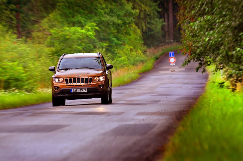 Podvozek Compassu je naladěn na americké poměry docela zajímavě. V lecčems mi připomněl v zimě testovaný Nissan Murano, na rozbitých silnicích je totiž až nezvykle tvrdý a o hrbolech pod koly dává vědět víc než citelně. V zatáčkách je zároveň třeba počítat se značnými náklony, pružiny s dlouhým zdvihem dávají autu poměrně dost vůle. Pokud tedy očekáváte ladnou houpavost, budete možná nemile překvapeni. Velké díry, kterých je u nás bohužel víc než dost, se pak projeví tvrdými rázy, které odpružení nezvládne odfiltrovat.
