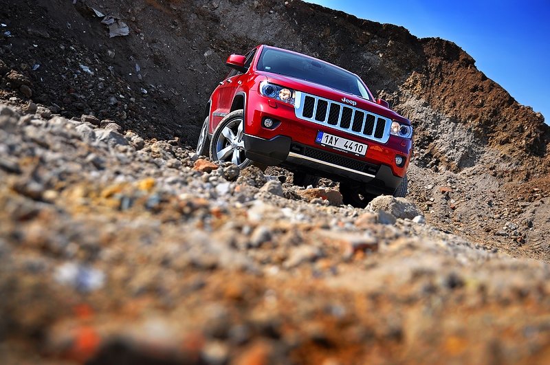 Jestli mě Jeep Grand Cherokee někde přesvědčil, pak to právě bylo při vyjetí do terénu. Stejně jako ve větším Range Roveru nabízí tento Američan možnost několika jízdních režimů určených třeba pro písek nebo kameny. Pneumatiky stavitelný podvozek má několik výškových poloh, takže se v terénu nemusíte bát přejíždět ani větší nerovnosti, na dálnici při vysokých rychlostech si auto sedne do více aerodynamické polohy. Auto navíc nabízí redukci. Alespoň podle mého srovnání Grand Cherokee směle můžete zařadit po bok SUV, která ještě nepropadla všeobecné změkčilosti a dokáží se předvést i mimo zpevněné komunikace.