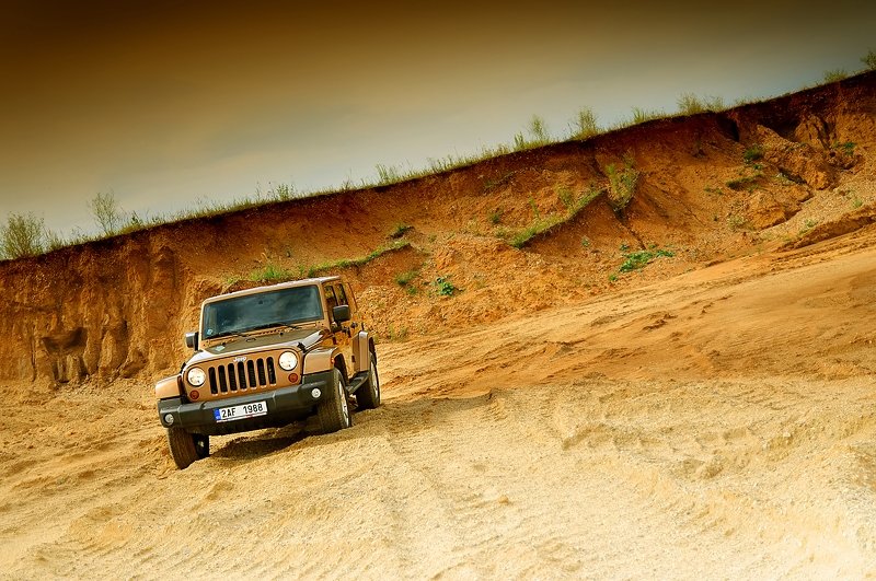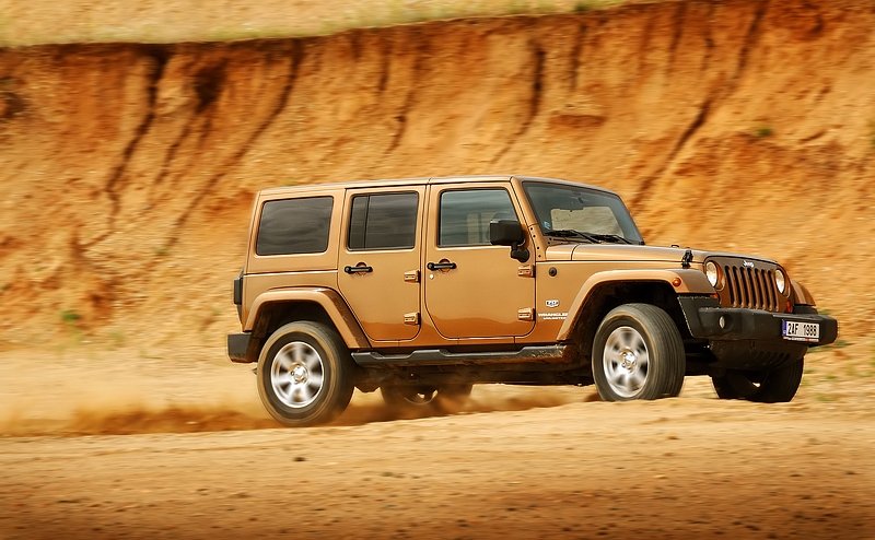 Wrangler vždy patřil, patří a doufám, že v budoucnu bude patřit pouze a jenom do terénu. Jen pro představu: přední nájezdový úhel 40°, zadní přibližně 30°, světlá výška 238 mm, redukce… Když si připlatíte, můžete dostat třeba i odpojitelné stabilizátory. Mimo silnice se Wrangler řadí mezi nejlepší. Náš testovací kousek si musel vystačit pouze s přiřaditelným pohonem přední nápravy a redukcí, nicméně ani s touto řekněme chudší terénní výbavou jsme ho do úzkých nedostali.