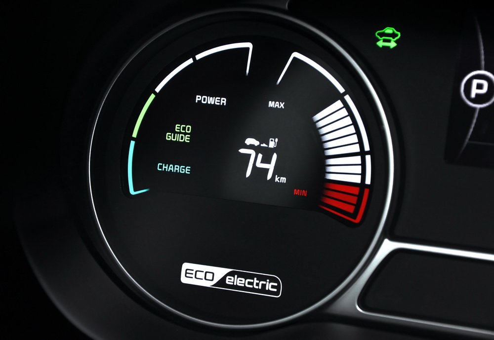 Přístrojový štít je kompletně digitální. Kromě obvyklých ukazatelů zde najdete například ukazatel hlásící, kdy ještě jedete ekologicky. Maximum pro ekologickou jízdu je zde 64 km/h. Sledovat můžete rovněž intenzitu dobíjení, a pokud se dostane kapacita akumulátorů na nebezpečně nízkou hladinu, rozsvítí se vám ikonka želvy. Neuposlechnete-li, želva se rozbliká, a pokud se rozsvítí červená kontrolka se symbolem baterie, můžete si pomalu chystat tažné lano.