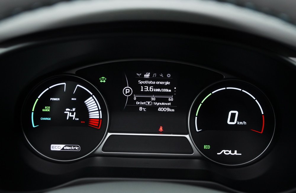 Když dáte Soulu EV co proto a podržíte-li pedál plynu na maximu, ukáže tachometr 154 km/h. Víc ani náhodou. Při takové jízdě logicky sledujete, jak expresně padá dojezd. Oficiální maximální rychlost je 145 km/h, což odpovídá praktickým zkušenostem.