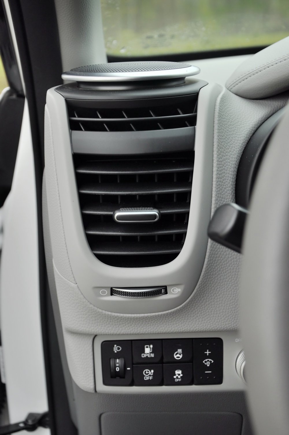 Než si vyzkoušíme absolutně tichou jízdu, musím se zastavit ještě u několika detailů souvisejících s přítomností elektrického pohonu. Ani v dnešní době není kapacita akumulátorů stále ještě tak velká, aby se elektřinou mohlo plýtvat, proto najdete na středovém tunelu tlačítko aktivující režim Eco a na panelu mezi ovladači je pro změnu umístěno tlačítko s nápisem „Driver Only“. První jmenované zapíná úsporný režim jízdy, kdy auto po uvolnění plynového pedálu o něco více rekuperuje, respektive kdy odezva na plynový pedál poněkud zleniví. Druhé zase po stisknutí nasměruje vzduch z klimatizace pouze na řidiče. Z jiných výdechů pak vzduch nefouká. To, že ale nejde ve finále o zásadní úsporu, prozrazuje fakt, že po aktivaci těchto tlačítek se dojezd nijak nezmění.
