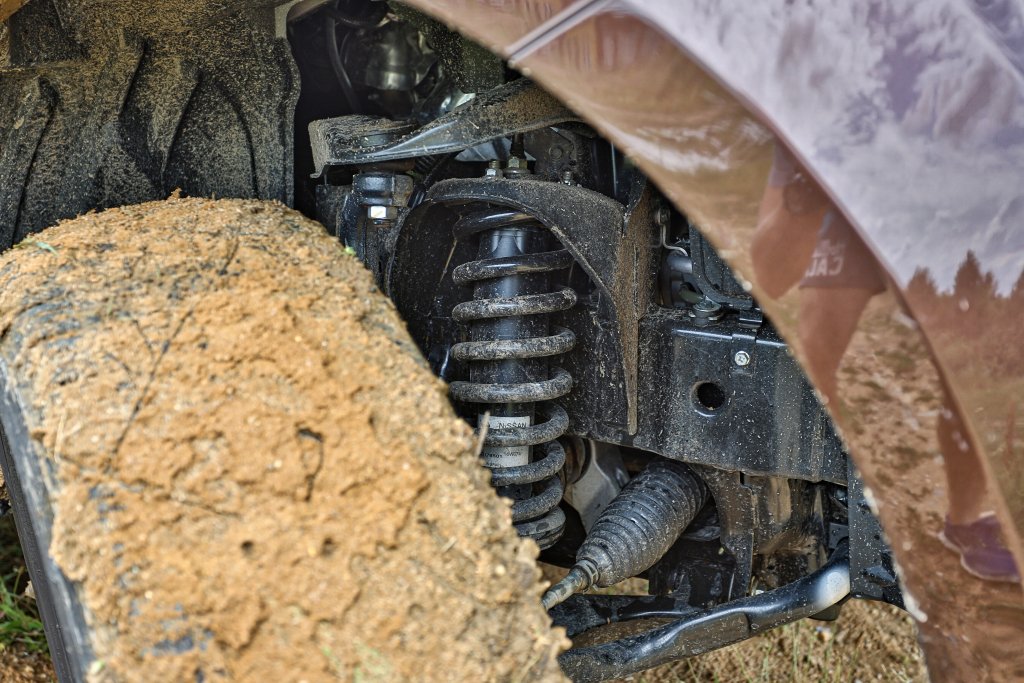 Navara se v terénu rozhodně neztratí. Disponuje totiž pohonem všech kol, světlou výškou přes dvaadvacet centimetrů, slušnými nájezdovými úhly, redukční převodovkou a za příplatek i uzávěrou zadního diferenciálu. Navara pak šplhá téměř po zdi (stoupavost přes 30 %), zdolává šedesát centimetrů hluboký brod a v případě potřeby se úspěšně prokusuje bahnitým terénem. Jediným omezením bývá vzhledem k třímetrovému rozvoru omezený přechodový úhel.