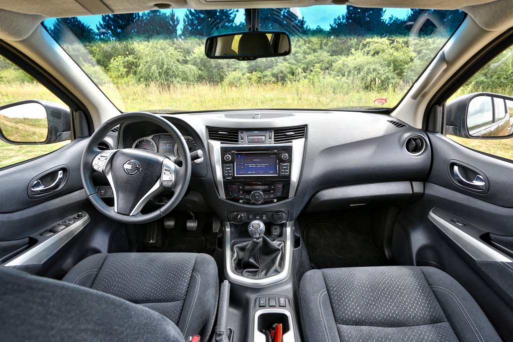 Největším rozdílem Navary oproti luxusnějším crossoverům jsou tvrdé plasty, ze kterých se interiér ve větší míře skládá. Dává to smysl, protože tvrdé plasty se lépe udržují, něco vydrží a zbytečně nezvyšují cenu vozu. Díky vysoce uloženým sedadlům je z vozu vynikající výhled směrem dopředu i do stran. Výhodou je pak otevřená zadní korba, která sice postrádá jakýkoliv kryt, ale skrze zadní okno vidíte vše, co se odehrává vzadu. Parkování s tímto obrem tak nečiní sebemenší problém. Pro ulehčení je tu navíc parkovací kamera s 360stupňovým zobrazením.