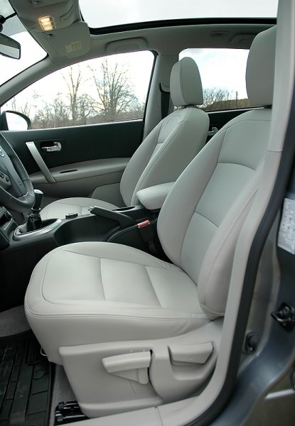 Tak trochu nechápu kombinaci bílé kůže a gumových „koberečků“. Sedím v autě do terénu nebo ho mám raději parkovat před Národním divadlem? No ale budiž, každý si může zvolit, co hrdlo ráčí. Osobně bych se přikláněl spíše k praktičtějším barvám potahů. Proč? Když si koupíte Qashqai+2, máte pravděpodobně děti. A ty zase mají neuvěřitelnou schopnost bryndat, drobit a všelijak jinak likvidovat váš drahocenný interiér. Pokud ale zatím ratolesti nemáte, pak není důvod vůbec o této verzi uvažovat. Do třetí výklopné řady se totiž nikdo jiný nevejde. Tedy pokud netrpí sebedestruktivními choutkami.
