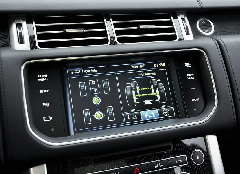 Range Rover je ještě lepší nejen v terénu, ale také co se týká řízení a obsluhy vůbec. Vše začíná například rozmístěním ovládacích prvků. Oproti předchozí generaci je zde o 50 % ovladačů méně. Navíc se řidič může spolehnout na několik nových systémů. Za zmínku stojí aktivní tempomat s radarem ukrytým pod předním nárazníkem. Podobně jako u Volva umí úplně zastavit, po klepnutí do plynového pedálu se zase rozjede.