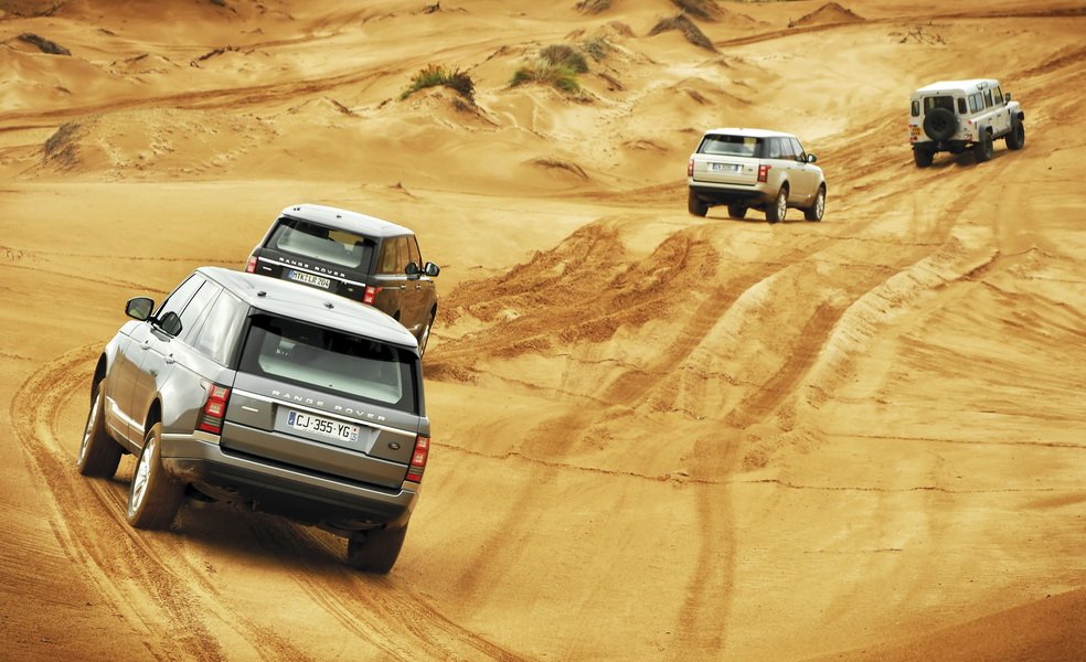 Stejně jako dříve lze nastavovat i pneumatický podvozek a jeho světlou výšku, a to až na maximálních 295,5 mm. To přišlo vhod třeba v dunách jižně od přístavu Essauria, kde bylo potřeba hledat vhodnou cestičku mezi zrádnými písečnými kopečky. Jízda na písku není až tak jednoduchá, a to ani s Range Roverem. Reakce na otočení volantem je zde totiž stejně dlouhá jako na výletní lodi Costa Concordia. A s takto drahým automobilem nechceme skončit jako její kapitán. Chce to tedy hlavně klidné pohyby a trpělivost. A když se pak změní písek v ostré kameny, musí jet člověk pomalu a obezřetně. Překvapením bylo, že to silniční pneumatiky přežily bez potíží.