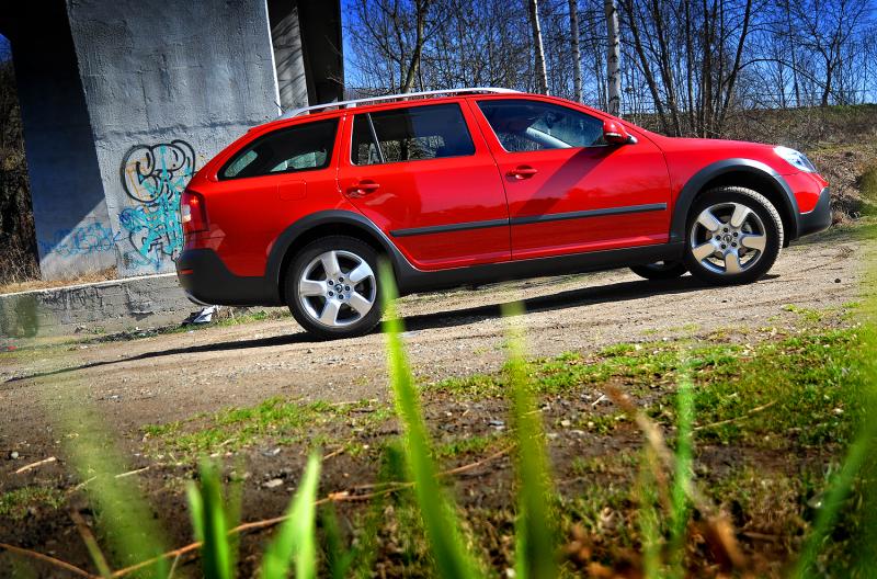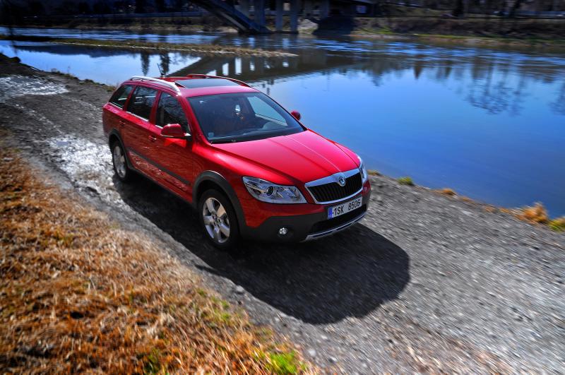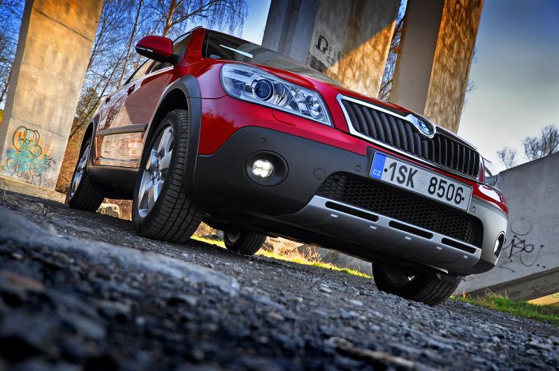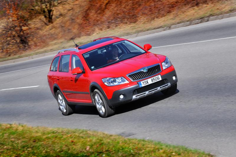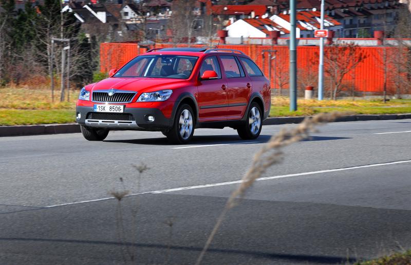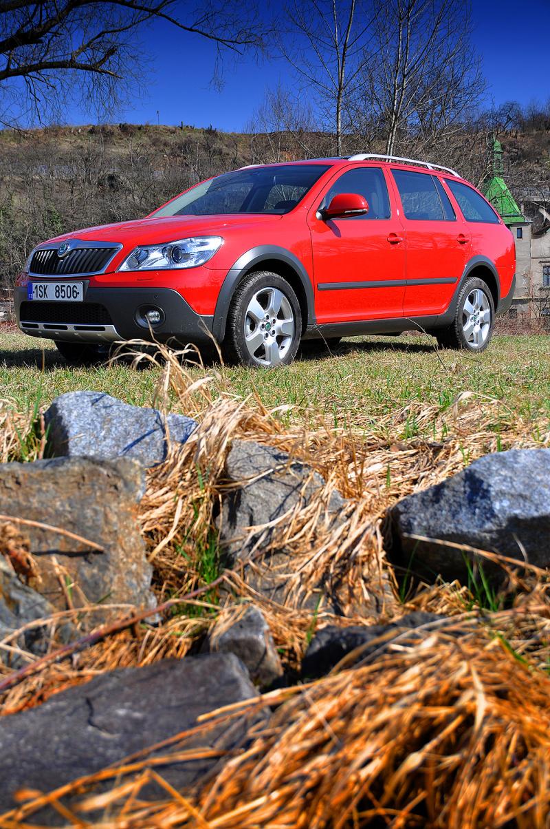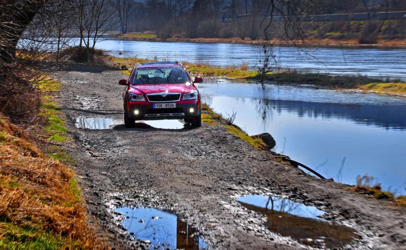 A zrovna tak přijde Haldex vhod mimo silnice, kde si poradí i s blátivými kalužemi a vyšší světlost (18 cm) spolu s ochrannými plasty umožní projet i poměrně hluboký rigol. Pozor je třeba si dávat na terénních zlomech, tam mohou dlouhé převisy Oktávce nepěkně zavařit. Také situace, kdy protilehlá kola ztratí kontakt s povrchem, auto příliš dobře nesnáší, ale pro naprostou většinu potřeb běžného majitele chaty v horské vesnici postačí.