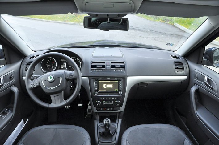 Interiér, stejně jako celá Škoda Yeti, je velmi dobře znám z už asi milionu napsaných testů prezentovaných v úplně všech médiích a nutno podotknout, že si více méně odnáší samou chválu. Není se čemu divit, mnoho chyb v něm totiž nenajdete. Prostoru je dost, zadní sedadla jsou pěkně variabilní. Určitá kritika by se snad mohla snést na přeci jen menší objem zavazadelníku, ale vzhledem k rozměrům auta a k segmentu, do kterého zapadá, nejde o nic hrozného.