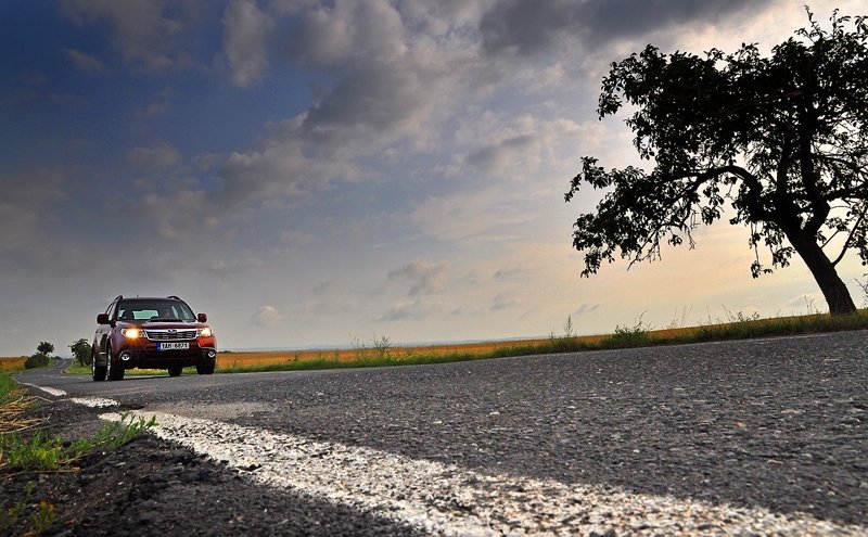 Forester je ideální volbou na české silnice, kterým se tak často přezdívá „tankodrom“. Nejen díky povedenému pohonu všech kol (mezinápravový diferenciál s viskózní spojkou), ale hlavně kvůli komfortnímu naladění. Auto dobře filtruje nerovnosti, ať už podélné nebo příčné. A to na 17 palcových kolech s pneumatikami 255/55R17.