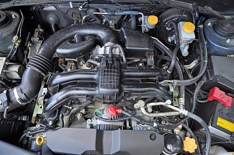 Motor označený jako FB20 je novinka tak významná, že dělá ze všech ostatních úprav provedených na Foresteru zcela podřadné změny. Nebudu zde do úplné podrobnosti popisovat detaily dvoulitrového boxeru třetí generace a odkáži vás na přiložený článek. Pouze ve stručnosti shrnu, že oproti předchozímu motoru má nová generace prodloužený zdvih, čímž se zlepšil průběh točivého momentu ve prospěch nižších otáček, konstruktéři snížili o 28% vnitřní tření v motoru, jiné je chlazení, sání, zkrátka všechno. Co se naopak v podstatě nezměnilo, jsou základní rozměry agregátu, který je díky konstrukci typu boxer velmi kompaktní a přímo ovlivňuje řízení automobilu.