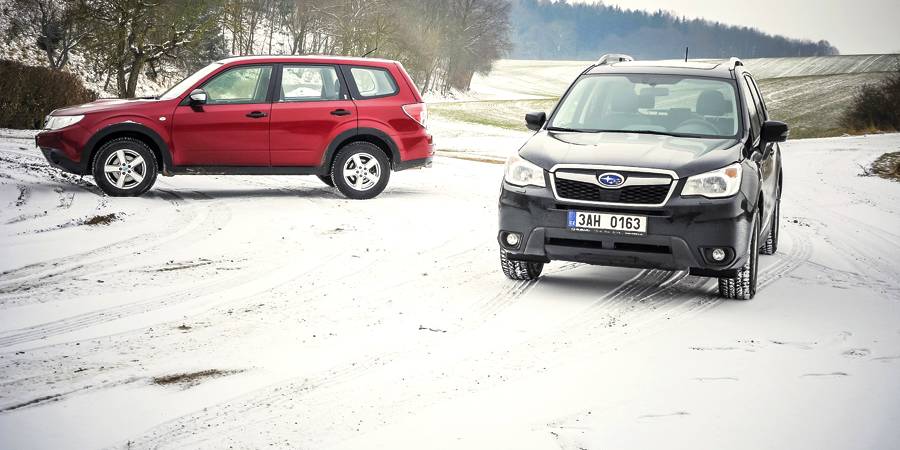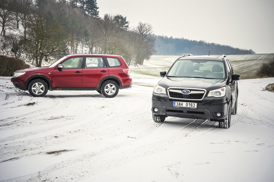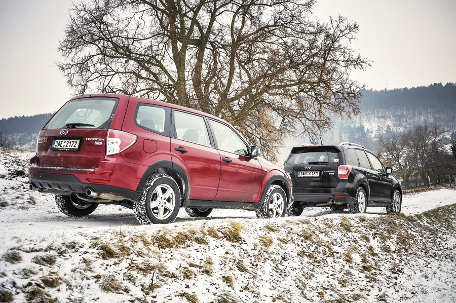 Postavíte-li starého a nového Forestera vedle sebe, naplno se ukáže fakt, že se čtvrtá generace posunula směrem k velkým SUV. Roli městského crossoveru před časem převzalo malé XV. Starý Forester vypadá vedle svého mladšího bratra jako přerostlé kombi, u novinky není pochyb o tom, že má na mušce všechny ty Hondy CR-V, Outlandery, Kugy a tak dále. Škoda že už dieselová verze nedostala charakteristickou kapličku na kapotě a také že u Subaru prozatím nevyužili možnosti diod v předních světlometech. Efektní „céčko“ není určeno pro denní svícení, nýbrž funguje pouze jako obrysové světlo. Ve tmě vypadá velmi dobře, ovšem na silnici pouze s těmito světly jezdit nelze. Denní světla najdete u předních mlhovek.