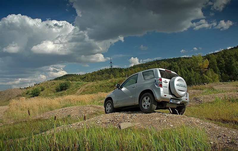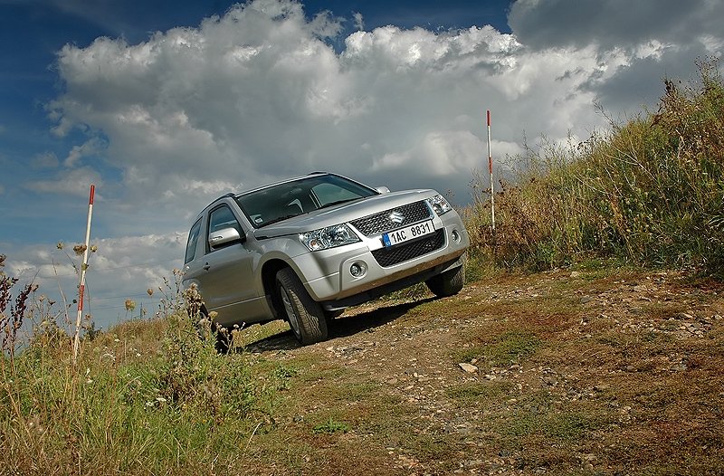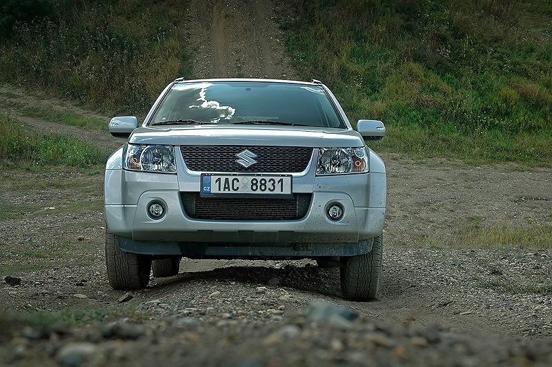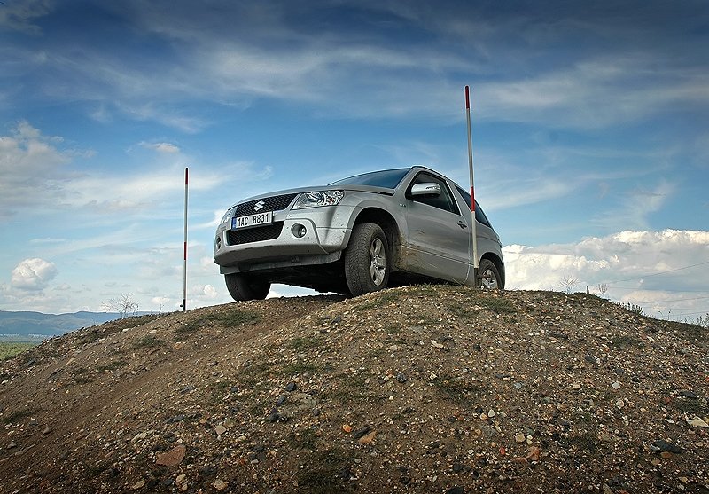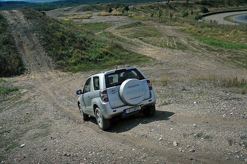 Rozměry třídveřové Vitary jsou také odpovědí na její schopnosti v terénu. Právě zde vidím smysl tohoto automobilu. Díky krátkému rozvoru vůz zdolá nejeden ostřejší zlom, kola umístěna v rozích karoserie zase vytváří velké nájezdové úhly. V terénu vás zkrátka mnoho překážek nezastaví a kdyby náhodou, pak máte k dispozici ještě jeden velký trumf, který není v tomto segmentu příliš obvyklý.