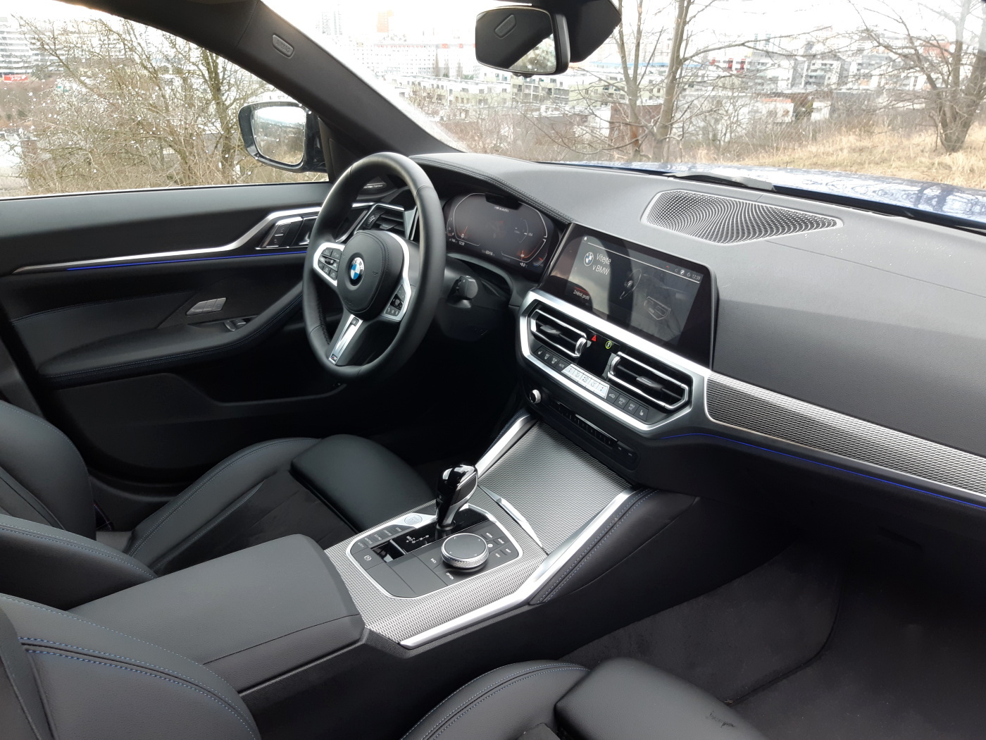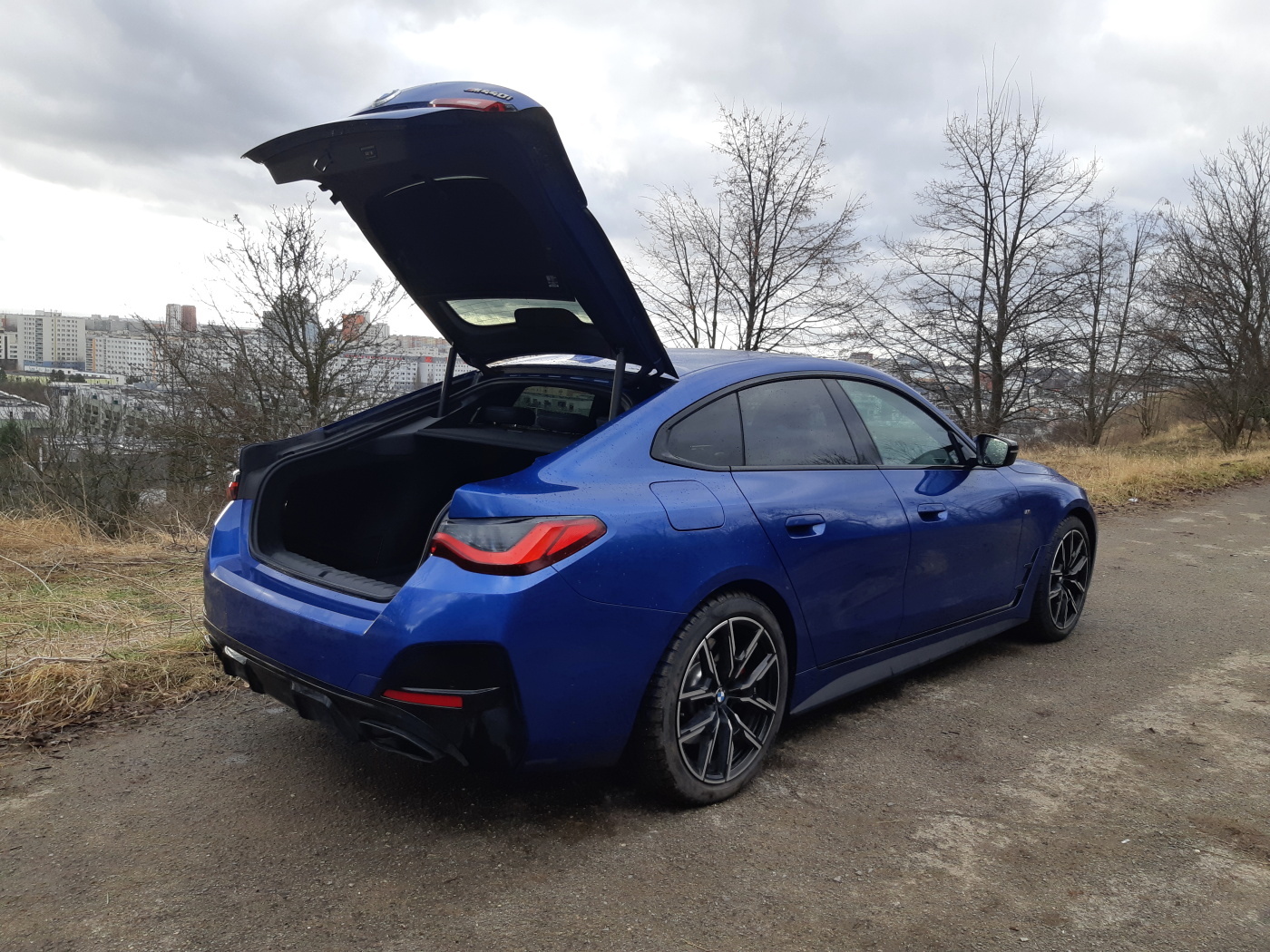Čtyři dveře, pět plnohodnotných sedadel, velká a vysoko otevíratelná zadní výklopná stěna a univerzální zavazadlový prostor přispívají k tomu, aby si řada 4 v provedení Gran Coupé zachovala své charakteristické přednosti jak pro každodenní život, tak pro cestování na dlouhé vzdálenosti.Karoserie se chlubí bezrámovými okny a celkově působí vyváženě. Hladká boční silueta se povedla, trochu nešťastně na nás působily kliky dveří – jsou minimalistické a vypadají báječně, ale uchopit je nám dělalo zpočátku problémy. Zavazadlový prostor nabízí 470 litrů využitelného objemu, což znamená mezigenerační zlepšení o slušných 39 litrů. Sklopením opěradel zadních sedadel (dělených v poměru 40:20:40) pak vykouzlíte 1290 litrů.