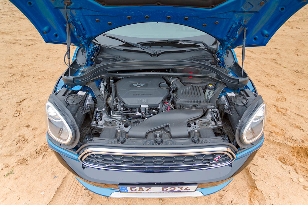 Dvoulitrový, turbodmychadlem přeplňovaný diesel ze sebe dostává 190 koní a 400 Nm točivého momentu. Přepsáno do praxe to znamená stovku za 7,4 sekundy. Agregát důsledně zabírá a ochotně zrychluje, přičemž mu nechybí výkon. Díky pohonu všech kol ALL4 nemá MINI problém s přenosem výkonu na silnici. Primárně je poháněna přední náprava, ke které se v případě potřeby připojují zadní kola, což probíhá automaticky bez jakéhokoliv přičinění řidiče.