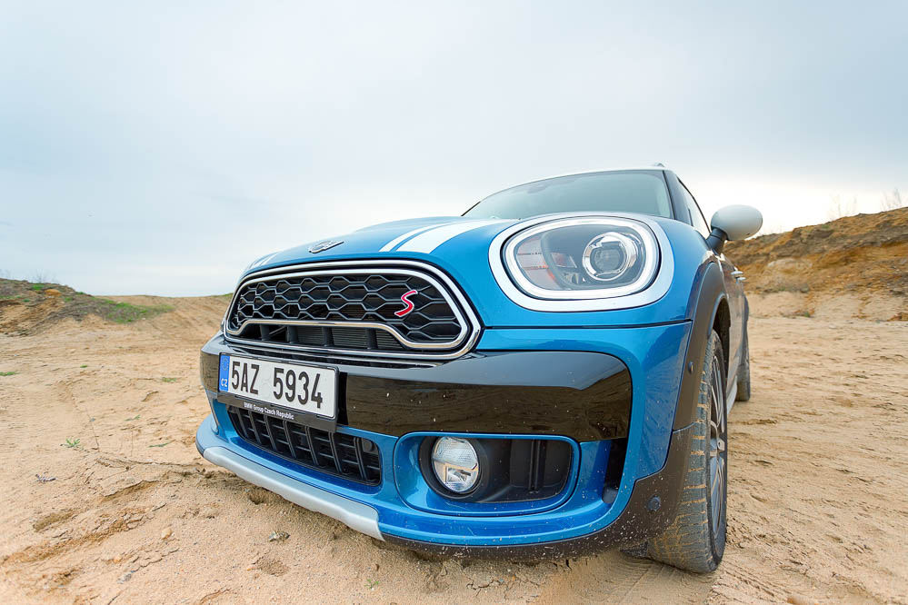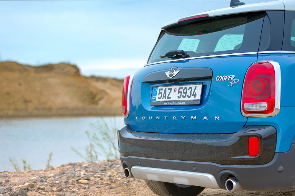 Přestože Countryman dosahuje velikosti Seatu Leon, pocitově působí daleko robustněji. Na první pohled také poznáte, o jakou značku se jedná. MINI se prostě nezapře. Na parkovišti mezi běžnou šedí vyniká a lidé si jej se zalíbením prohlížejí. Countrymanu nechybí typické provedení předních světel, nezaměnitelná přední maska, téměř kolmé čelní sklo či dvoubarevné lakování. Vzadu potěší vertikální svítilny se zajímavou grafikou tvořenou výhradně klasickými žárovkami. Přední světla kombinují žárovky pro blikače a LED pro denní svícení a hlavní a mlhové světlomety.