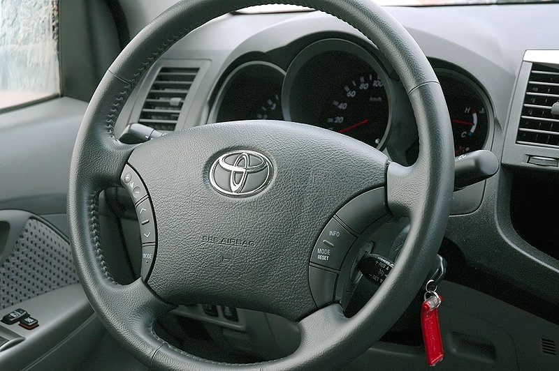 Karoserie typu pick-up je určena především pro práci. Každý, kdo Hilux hodlá zaměstnat, si může vybrat mezi třemi typy: Single Cub, Extra Cub a nebo náš Double Cub. Toto řešení nabízí pětimístnou kabinu a korbu o rozměrech 1500×1500 mm. Například takovou pěknou hromádku bytových dveří lze odvézt bez větších problémů pouze s otevřenou korbou. Ale zpět do interiéru.