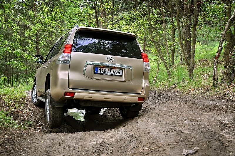 Všechny výhody legendárního modelu značky Toyota se projeví ihned poté, co sjedete ze silnice. Jestliže bych ohodnotil schopnosti na silnici známkou dva mínus, pak mimo silnici to je jednička s hvězdičkou a ještě k tomu třikrát podtržená. Tohle auto totiž zvládne vše, od 700 mm brodu až po ten nejtěžší terén a vy si přitom sedíte v klidu v té široké, pohodlné a vyhřívané sedačce, kroutíte dřevěným volantem, sledujete obraz z kamer umístěných vpředu, na boku, vzadu a hlavně, vůbec o nic se nestaráte. Pravda, občas budete muset dát pokyn k tomu, aby vůz zapojil redukci, případně uzavřel mezinápravový diferenciál, ale to je tak všechno. Defender je možná ještě legendárnější a je to možná ještě větší nebojsa, jenže než v něm pákou zařadíte potřebný převod a uzavřete vše podstatné, Land Cruiser už dávno mizí v prachu cesty. Vše zařídí elektronika a zařídí to výborně.