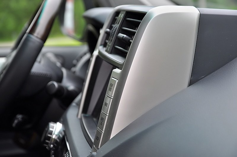S množstvím prvků výbavy souvisí také počet ovladačů. Kromě luxusních zbytečností nabízel Land Cruiser zástup užitečných pomocníků. Mohli jsme si nastavovat tuhost tlumičů, mohli jsme manipulovat s výškou karoserie, mohli jsme jednotlivé systémy vypínat. Má to ale jeden drobný háček. Několik ovladačů se schovalo pod volant, a tedy je prakticky nevidíte. Pominu-li ne příliš přesvědčivou imitaci dřeva, pak byla právě tato vlastnost jednou z těch, o kterých bych mohl říci, že mi vadily. Když například přepnete tlumiče do režimu SPORT, rozsvítí se kontrolka, ale na onom schovaném ovladači, takže je celkem k ničemu.