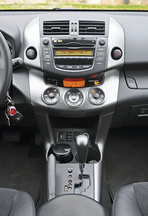 Jako každá Toyota má také Rav4 jednoduše uspořádaný interiér. Ten možná působí trochu šedivě a jednotvárně, je však precizně zpracovaný a o nějakých ergonomických chybách nemůže být ani řeč. Poslední chyba, v mnoha médiích tak často omílaná (ovládání palubního počítače kolíčkem v přístrojovém štítu), už byla odstraněna před delší dobou. Na volantu se objevilo tlačítko „DISP“. Další kritizovaná věc, a sice dveře otevírané směrem k chodníku, ovšem nadále zůstává a s největší pravděpodobností zůstane až do příchodu čtvrtého generace.