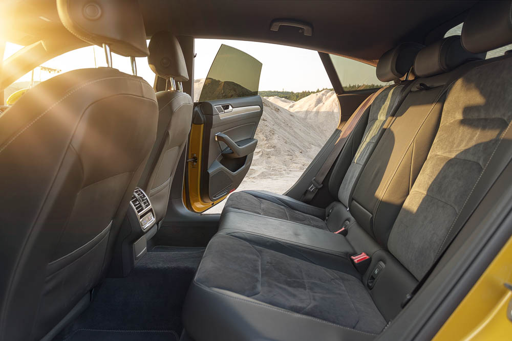 Od stylových manažerských vozů se nečeká, že budou praktické. Přesto se Arteonu povedlo nasadit poměrně vysokou laťku v kategorii kufrových rozměrů. Kufr, který se skrývá pod elektricky výklopnými pátými dveřmi, má základní kapacitu 563 litrů. Na délku má úložný prostor 116 cm, na šířku 104 cm. Nemusíte se tak vůbec bát, že byste s Arteonem něco neodvezli. Volkswagen tím posunul využitelnost aut z kategorie sedan-kupé o stupeň výš. A to si ještě představte, že v prvním Passatu CC bylo vzadu místo jen pro dva cestující, prostřední nouzová sedačka chyběla.