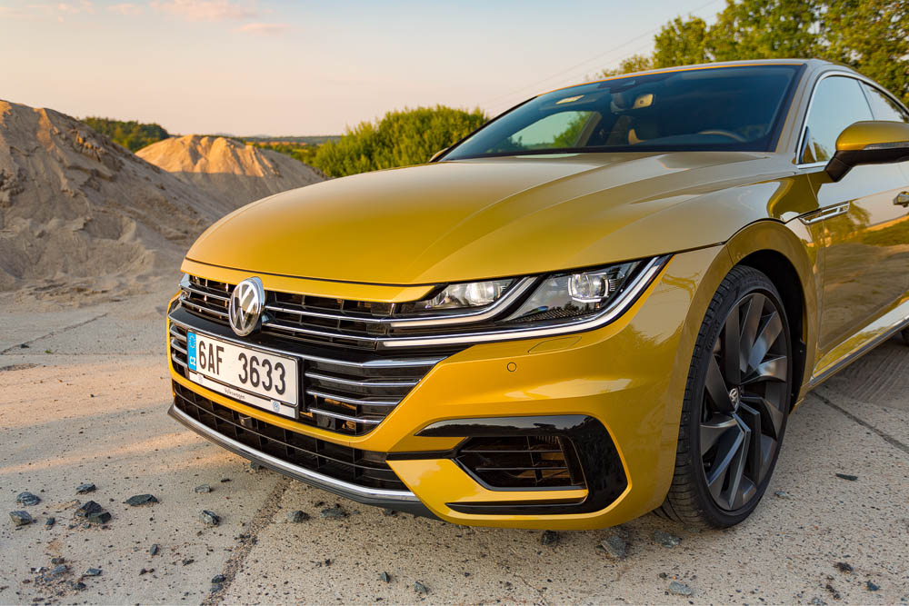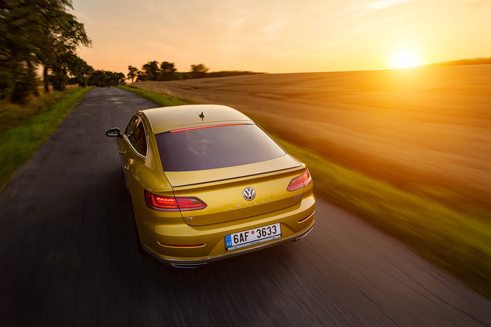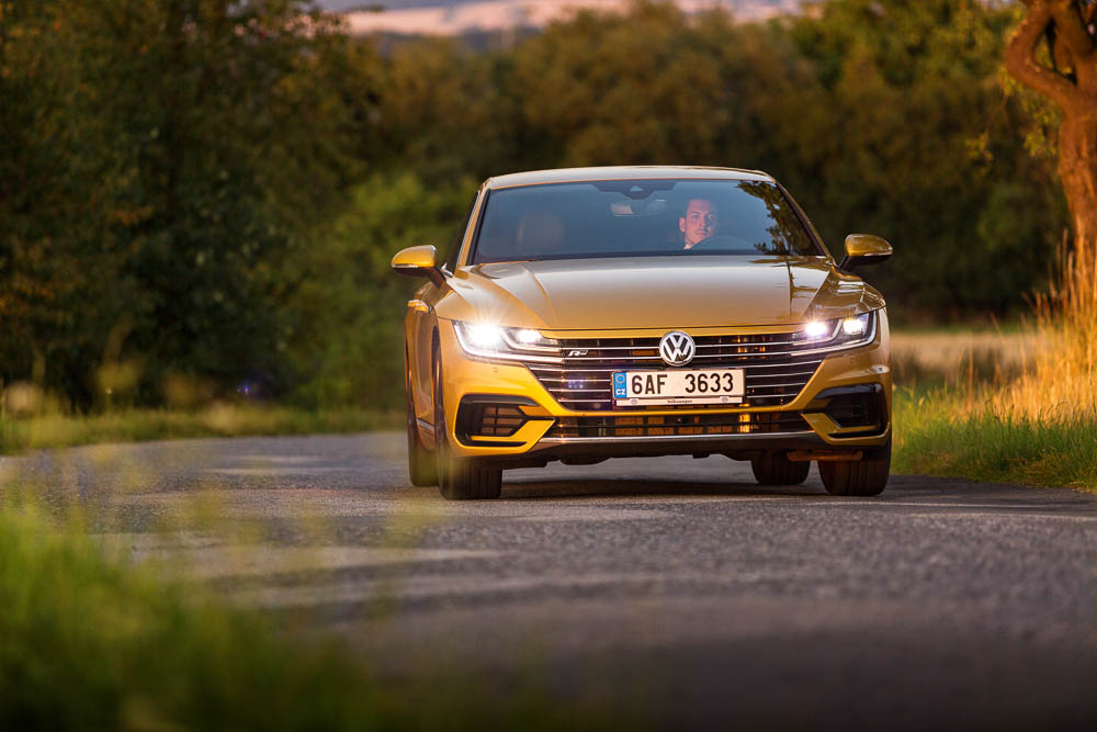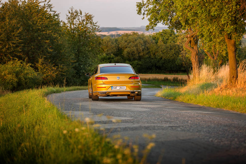 Stává se málokdy, že nejprve testujeme auto v zahraničí a poté i na českých silnicích a vypadá při tom na první pohled stejně. Když jsme vám na začátku léta přinesli první jízdní dojmy z Arteonu, byl vyveden v parádním paketu R-Line ve zlatém lakování, tedy alespoň co se týče oficiálních fotografií z akce, které nám automobilka poskytla. Zlatá barva byla totiž i reklamní, Arteonu to v ní obzvlášť sluší. V realitě jich však určitě bude jezdit víc bílých nebo stříbrných. To je ale jedno, k testu znovu doputoval zlatý kousek. Naštěstí alespoň v jiné specifikaci.