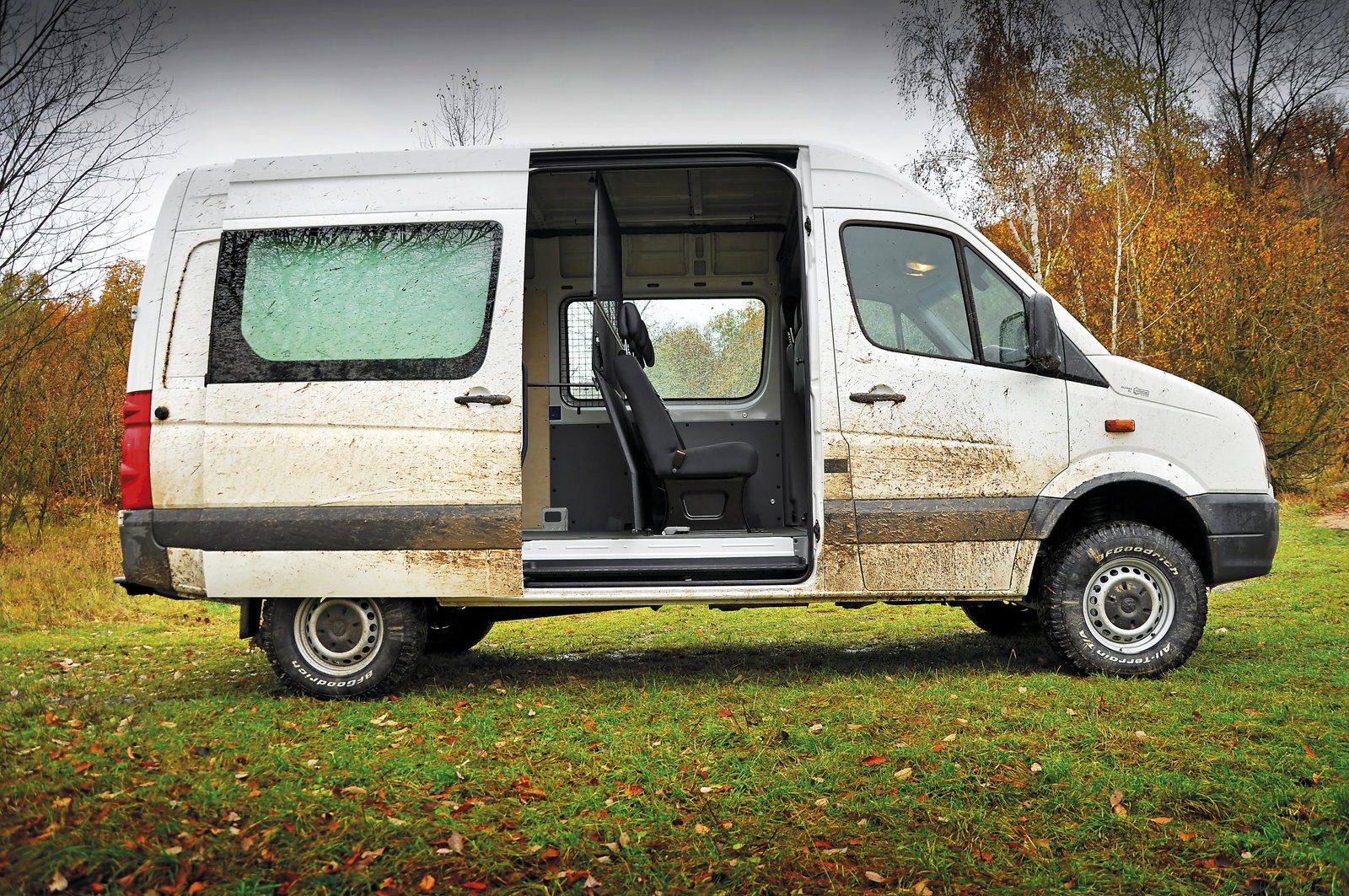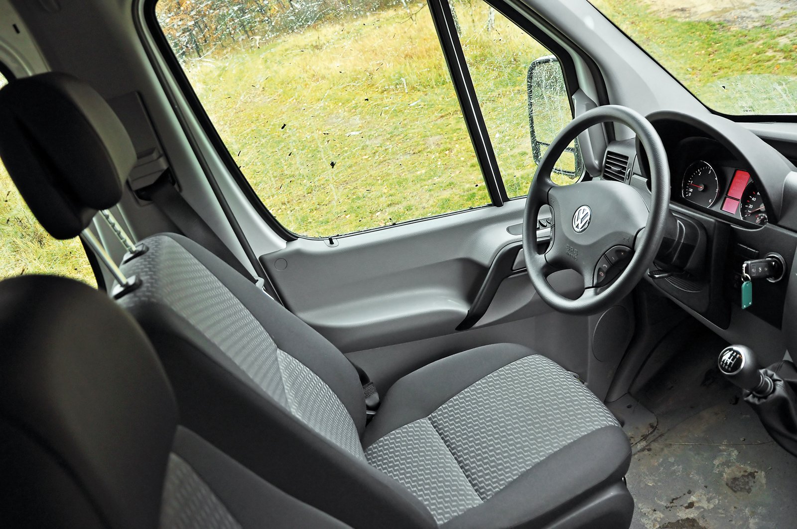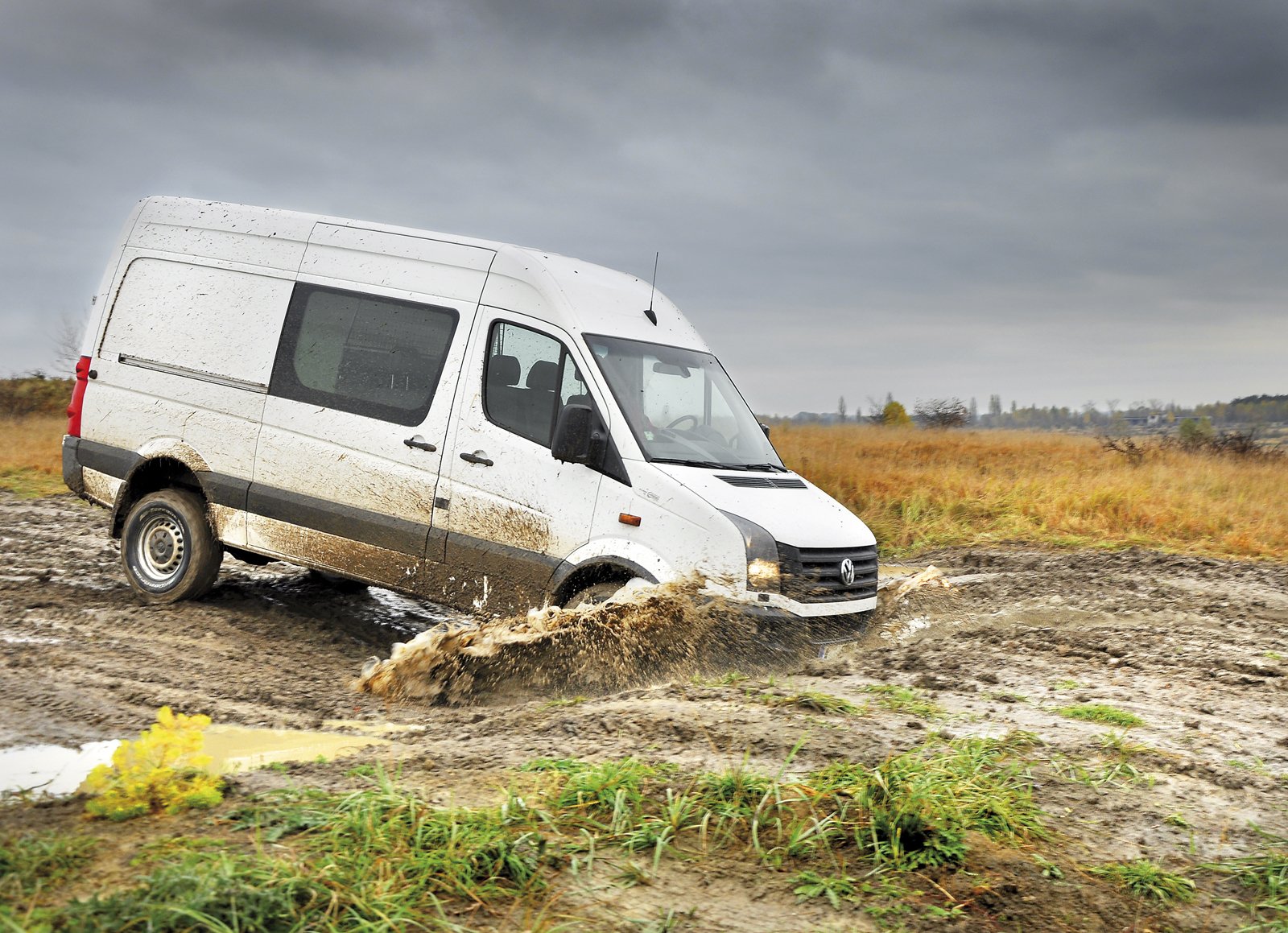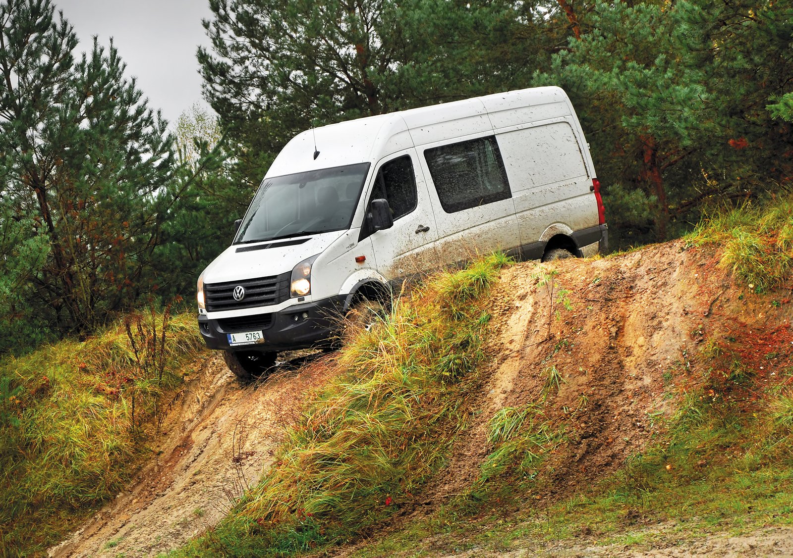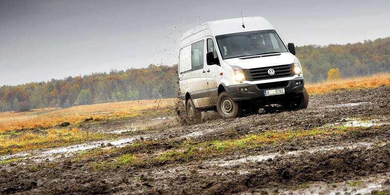 Už tolik nevadí boční náklony a začnete si užívat příjemný pocit extrémně vysokého posazu, obrovského nadhledu a dojmu, jako kdyby se vás veškerá ta špína a bláto, jimiž projíždíte, vůbec netýkaly. Občas si Crafter „sedl“ na břicho, ale vše je chráněno. K mému překvapení nepřekážel v terénu ani přední, ani zadní nárazník.