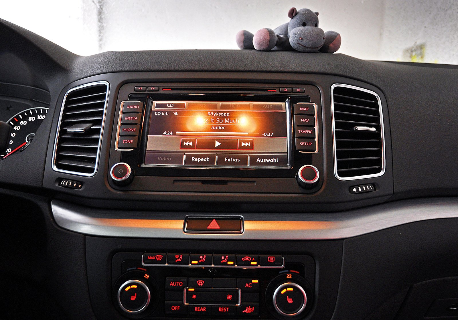 Kromě toho jsme si užívali i rozměrného střešního okna s elektrickým ovládáním, vyzkoušeli jsme samočinné parkování, které je zejména v těsnějších prostorách k nezaplacení, a chválili jsme zpětnou kameru, jejíž čočka je dobře chráněná před zašpiněním. A to je jen část z příplatkové výbavy, kterou si do Sharanu můžete pořídit. Pokud si přejete elektrické ovládání posuvných a zadních dveří, je dostupné. Zklamala nás však navigace s pevným diskem, která trochu absurdně postrádá vstup USB. U auta za milion korun jde o zanedbatelnou položku, která by se měla montovat standardně.
