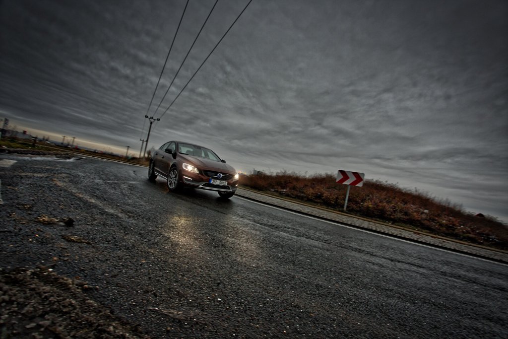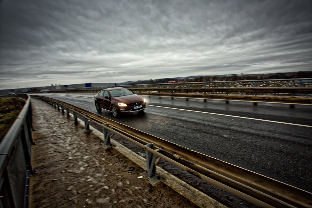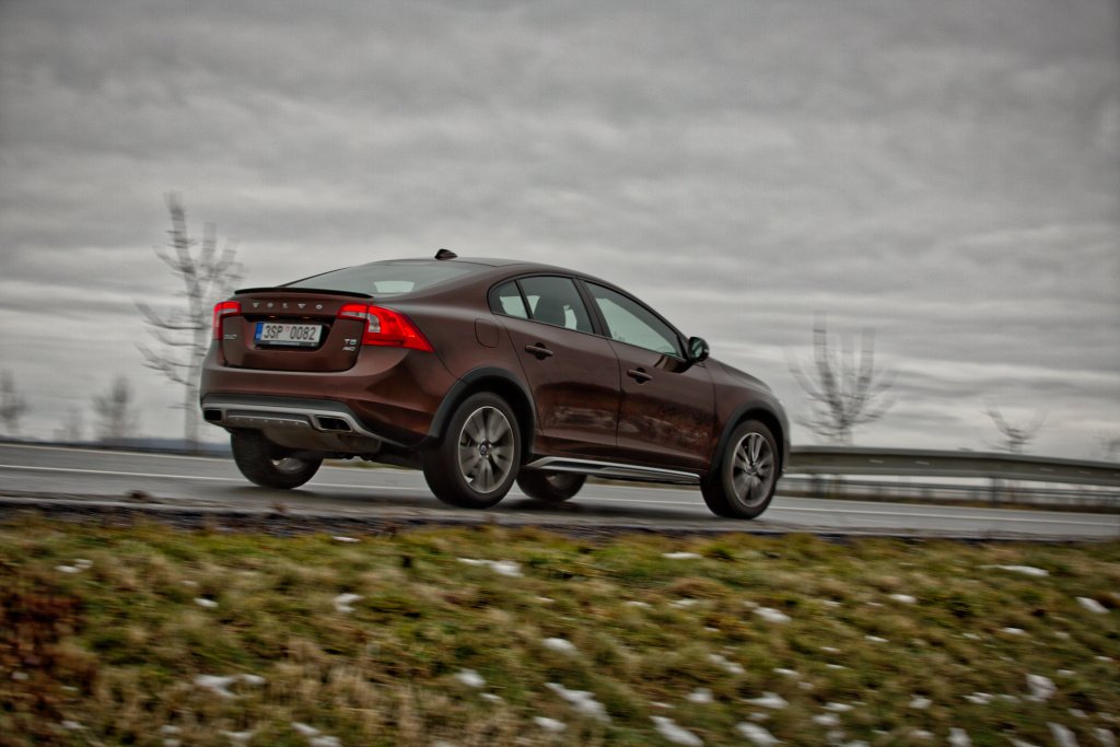 Klasická S60 nejezdí vůbec špatně. Kombinace pohonu všech kol a vytříbeného naladění verze Cross Country je ještě o „level“ dále. Zkoušená verze disponuje skvěle odladěným podvozkem, který umí být zároveň komfortní a při potřebě zrychlit nehází řidiči klacky pod nohy. Přestože jsem po prvních kilometrech za volantem váhal přitlačit na plynový pedál, mé obavy byly zcela liché. Zvýšený podvozek není v ostře projížděných zatáčkách ke škodě a Cross Country se chová dokonce o něco lépe než běžná S60.