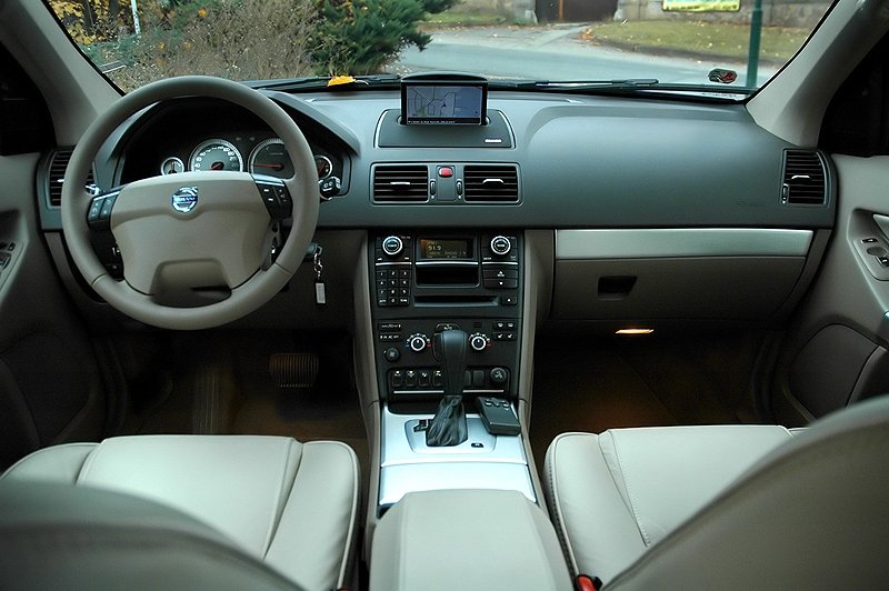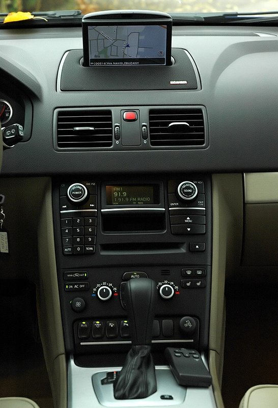 XC90 je jedním z posledních modelů, který ještě nepřešel na nový odlehčený design značky, jenž uvnitř symbolizuje tenká středová konzole. Vidět to je i na volantu a kapličce s budíky. Ovládací prvky a malý displej vprostřed desky patří také do let minulých, i když ani v nových vozech se Volvo příliš neposunulo. Na druhou stranu proč kritizovat, člověk přece nepotřebuje nějaká barevná blikátka. Na rádio pořád stačí jeden řádek.