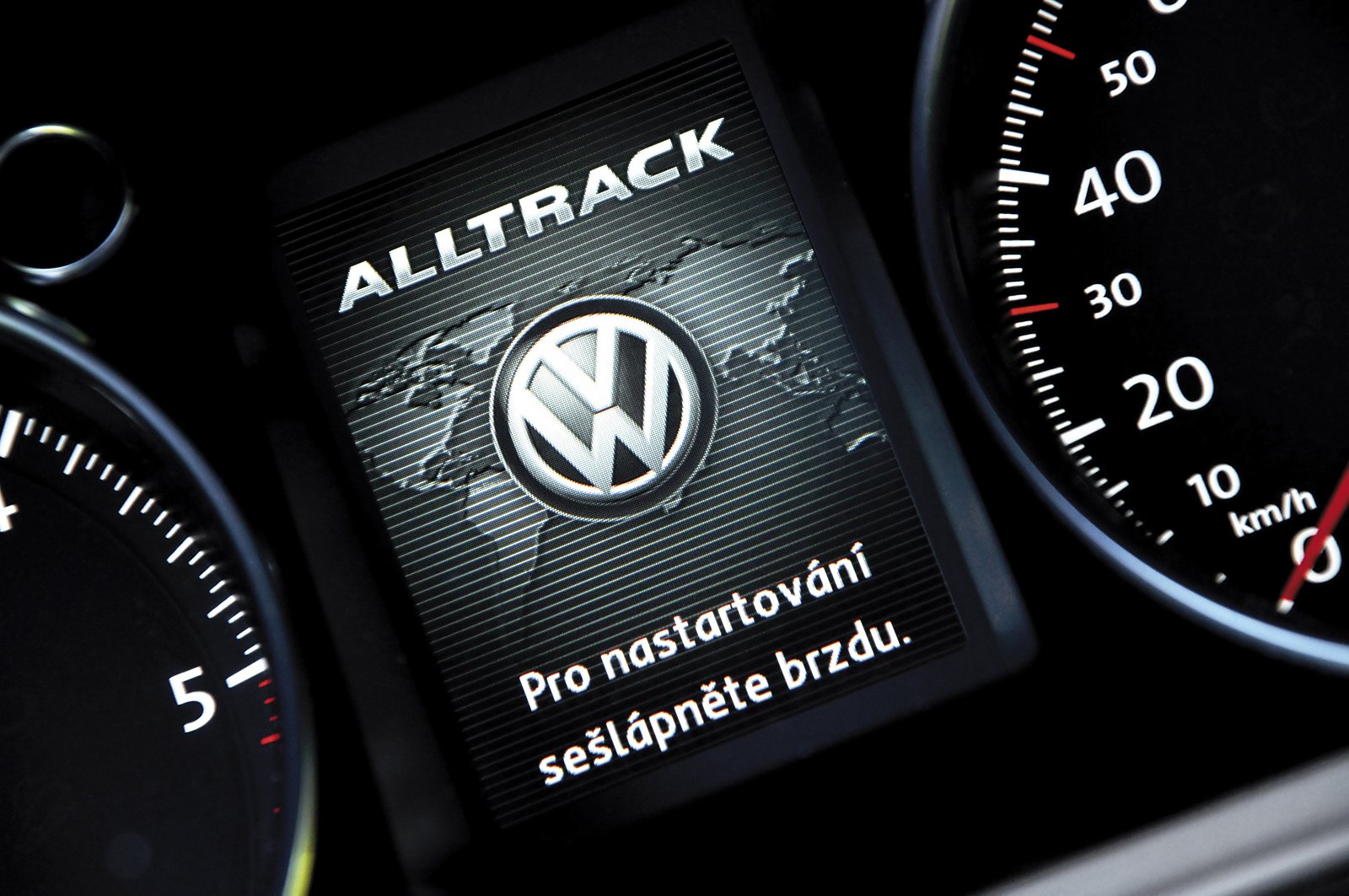 Německého nováčka jsme si stručně představili už v dubnovém vydání 4×4 AM, proto pouze v rychlosti zopakuji základní fakta. Alltrack vychází z výbavy Highline. Oproti ní navíc přidává efektní oplastování karoserie, nějaké ty štítky a nápisy Alltrack, v interiéru hliníkové obložení palubní desky a především třícentimetrový nárůst světlé výšky a pořádný kovový kryt pod motorem. Například z Volkswagenu Tiguan se pak do Passatu ještě nastěhoval systém usnadňující jízdu v terénu. Tlačítko Off Road umístěné na středovém tunelu mění chování ABS, reakce na plynový pedál nebo deaktivuje systém start/stop. Přesto je jasné, že bychom měli se slovem „terén“ zacházet opatrně. Ale k tomu se ještě dostaneme.