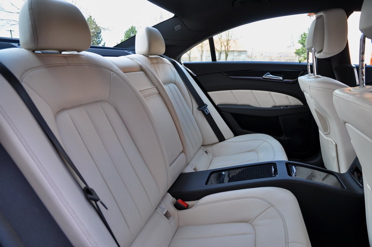 Psát o luxusně pojatém interiéru je „nošením dříví do lesa“. Pravda, minule jsme jen tak zlehka u ML 350 BlueTec kritizovali některé nedostatky ve zpracování, u CLS na toto ale není prostor. Drobnosti se najdou, ale jde skutečně o vyložené detaily. Velký dojem dělá světlá kůže, která vypadá hodně dobře. Asi nemusím rozepisovat, že není zrovna dvakrát praktická. Nakonec nějakým nedopatřením se od něčího pozadí už stačilo ušpinit zadní sedadlo.