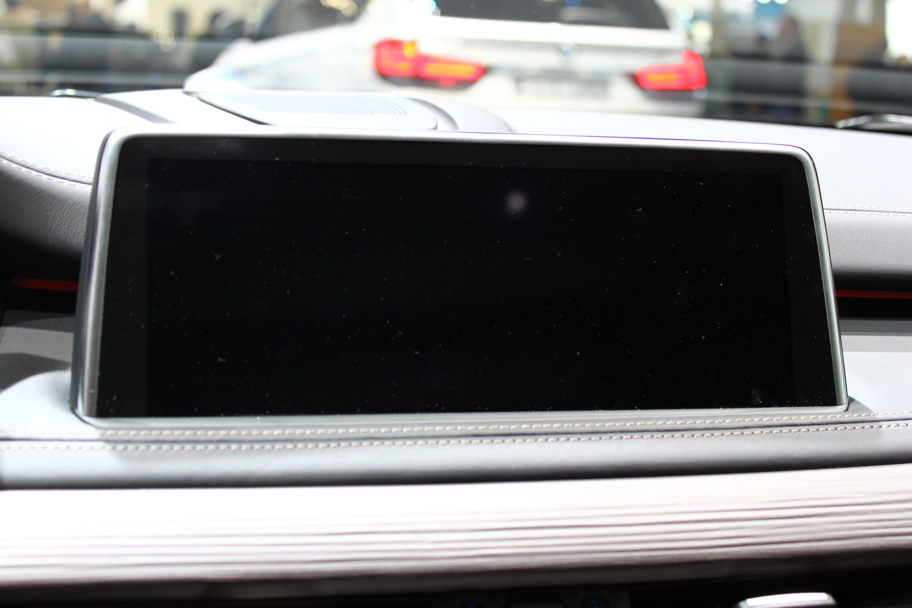 BMW X5 jsme pořádně prolezli. Naše poznatky jsou, že mu to v bílém lakování nesmírně sluší. Bohužel, automobilka si nedala příliš záležet na tom, aby novinku předvedla v nejlepším světle a vůz nechala totálně vypnutý. Ze sedadla spolujezdce jsme si tak nemohli vyzkoušet ani multimediální systém ani přístrojový štít. A jak je z našich snímků jasné, když je přístrojovka vypnutá, neuvidíte vůbec nic. Jediné, co bylo vidět, byl displej zábavního systému ve druhé řadě sedadel.