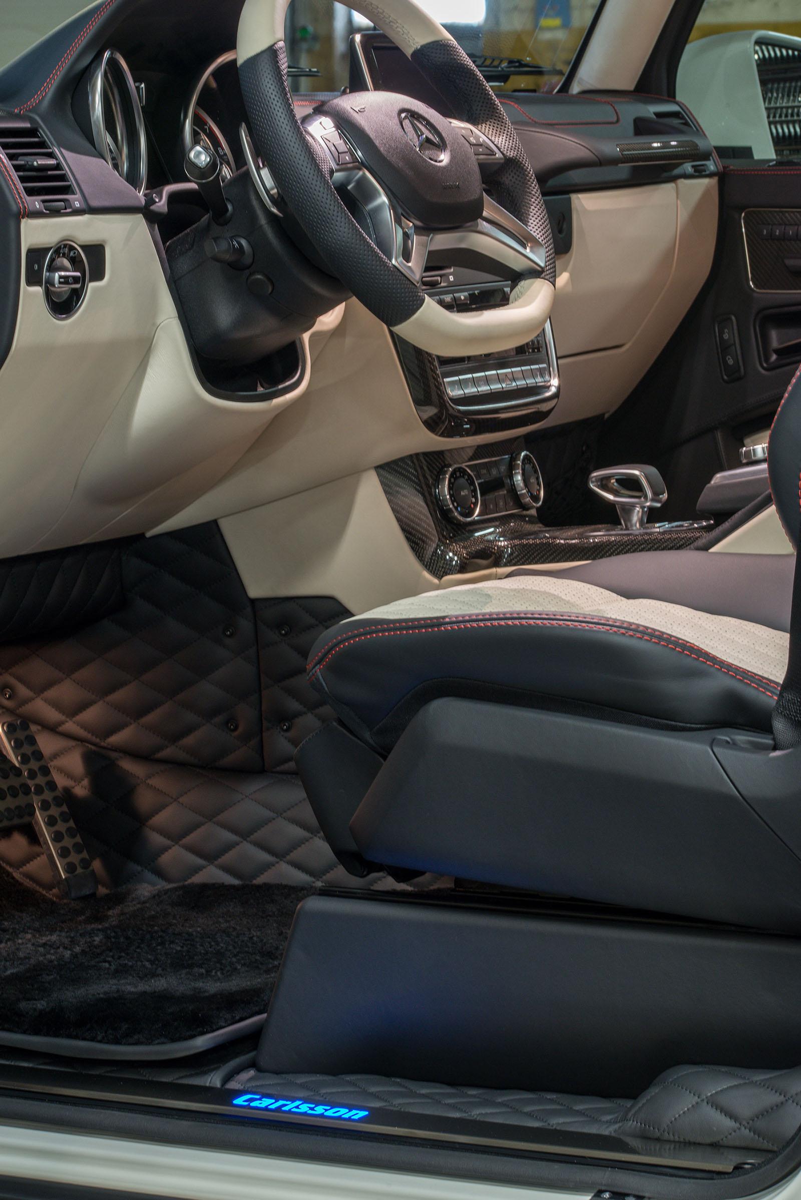 Brabus představil svou úpravu pro G63 AMG 6×6 již dříve, teď se přidává další tradiční značka. Carlsson se vyhnul zásahům do exteriéru (což se dá pochopit) a soustředil se na interiér. Kabina dostala čalounění prémiovou kůží kombinované s Alcantarou, samozřejmostí jsou karbonové díly, hliník, pravé dřevo a tak dále.