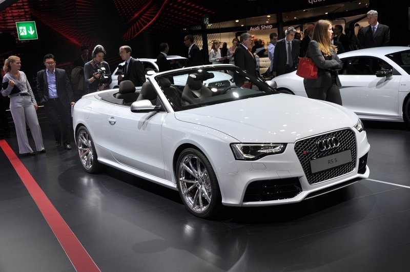 Audi RS5 Cabrio jsme si už důkladně představili v předchozím textu, od verze kupé se kromě elektricky stahované plátěné střechy odlišuje jen v zanedbatelných detailech. Poháněné je opět atmosférickým 4.2 V8 FSI o výkonu 331 kW (450 k) a točivém momentu 430 Nm. Maximální rychlost omezenou na 250 km/h lze za příplatek posunout na 280 km/h, stovku zvládá RS5 Cabrio za necelých pět vteřin.