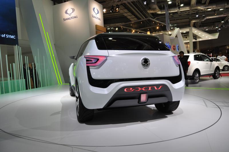 Ssangyong e-XIV je konceptem malého crossoveru poháněného elektromotorem, který je dobíjen malým spalovacím motorem. Dodatečným zdrojem energie je solární panel v prosklené střeše. Sériové výroby se nejspíš nedočkáme, koncept by ale mohl posloužit jako předloha pro malý crossover s konvenčním spalovacím motorem a civilnějším designem – další konkurence pro Nissan Juke.