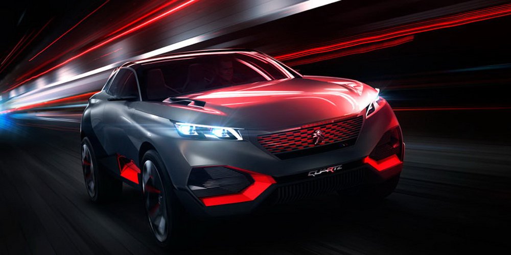 Peugeot Quartz je studie sportovního SUV. Jako základ byla použita platforma, na které stojí například současný model 308, pod kapotou najdeme přeplňovanou jedna-šestku disponující výkonem 270 koní. Té ovšem budou pomáhat dva elektromotory, každý uložený u jedné nápravy. Sečteno a podtrženo, Quartz disponuje výkonem 500 koní.