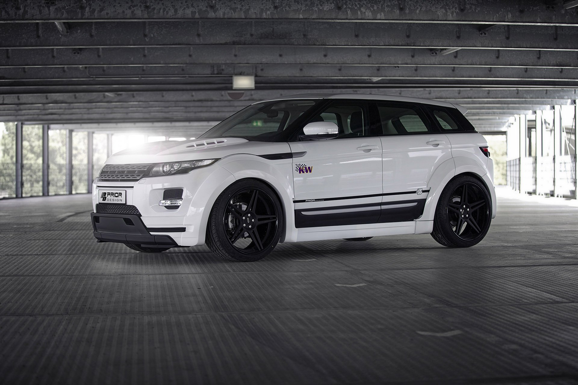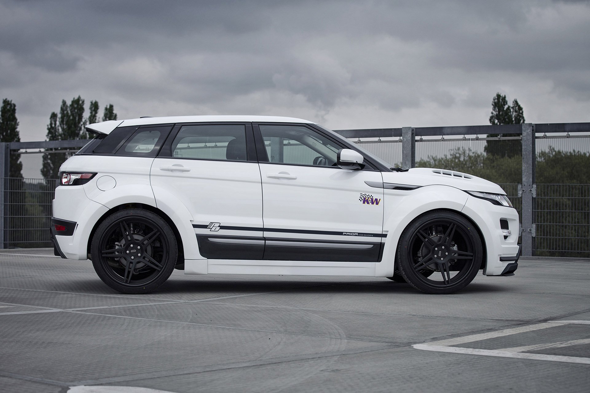 Range Rover Evoque na obrázku dostal aerodynamický kit s rozšířeným tělem. Oblouky nad velkými litými koly v černém lakování jsou opravdu výrazné. Nový je kit s předním a zadním spoilerem. Pro nejodvážnější je připravena i přepracovaná kapota. Ta je zvýšená a má výrazné nasávací otvory. Range Rover Evoque se tak tváří ještě drsněji.